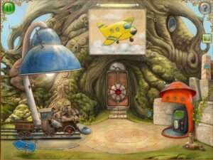 A przejście do kolejnej mapki, to nie takie hop siup. Czasem, by odnaleźć wszystkie elementy porozrzucane w danej lokacji, trzeba mocno wysilić szare komórki, rozwiązując proste zagadki. Zaraz na starcie etapu dostajemy informację o podstawowych przedmiotach do znalezienia oraz ich liczbie. W trakcie eksploracji okazuje się jednak, że aby odszukać, załóżmy, żółtą kulkę, trzeba dostać klucz, który ma bohater danej lokacji. On odda nam go, jeśli dostarczymy mu pewną liczbę zielonych kulek. No i ilość przedmiotów do wyszukania znacznie wzrasta. A uwierzcie mi, nie leżą one na widoku. Czasem są w zamkniętej skrzyni, walizce, słupie telegraficznym czy pod innym przedmiotem. W znakomitej większości znalezienie ich sprawia przyjemność, ale zdarzają się przypadki, przy których miałem ochotę grę odinstalować. Na szczęście po opuszczeniu danej lokacji dostajemy całkiem sympatyczną możliwość "poskładania" ze znalezionych puzzli planety Tiny w menu głównym, co skutecznie rozładowuje ewentualnie nagromadzoną frustrację.