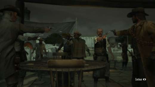 To skupienie się na eksploracji oraz przedstawienie osobistej historii zmęczonego dotychczasowym życiem człowieka, niestety, staje w dużej opozycji do samej struktury produkcji, zbudowanej na podstawie najbardziej znanej marki studia. Termin "GTA na Dzikim zachodzie" niewątpliwie rozbudzał wyobraźnię i na pierwszy rzut oka był niemal synonimem sukcesu, ale głębsze spojrzenie ujawnia niekompatybilność tego modelu rozgrywki z założeniami RDR. Grand Theft Auto to sandbox w pełni tego słowa znaczeniu, gdzie całe aglomeracje miejskie istnieją tylko dla rozrywki gracza. Ten koncept jest na każdym kroku kultywowany przez developerów i dlatego rozpoczęcie kompletnej demolki przecznicy, a następnie ucieczka przed policją, są tak ekscytujące. Jednocześnie osadzenie akcji we współczesnych czasach oznacza dostęp do ogromnej liczby zróżnicowanych pojazdów czy broni, znacząco zwiększających możliwości dawane grającemu. Przygodom Johna Marstona brak tego przywileju, co prowadzi do wielu zgrzytów w czasie gry i najbardziej rzuca się w oczy podczas misji wątku głównego. Nie licząc kilku pozytywnych przypadków, większość z nich opiera się o ten sam schemat: odebranie zadania -> jazda do celu -> strzelanina. Każdej z nich akompaniują wcześniej wspomniane fenomenalne dialogi, a i samo strzelanie, z automatycznym centrowaniem na przeciwniku oraz systemem Dead Eye, sprawdza się zaskakująco dobrze, ale, ostatecznie, nie udaje im się powstrzymać uczucia znużenia. Wplatanie tak dużej liczby batalii prowadzi do absurdalnej liczby zabitych osób, w moim wypadku mocno przekraczającej 1000 istnień. Bohater miał kończyć z przestępczym życiem i ustatkować się, a tymczasem podczas swojej krótkiej podróży eliminuje kilkukrotnie więcej bandytów niż wynosi populacja przedstawionego fragmentu USA i Meksyku. Wielka szkoda, że autorzy nie zdecydowali się na rozwinięcie zadań nie wymagających rozlewu krwi, a przy tym idealnie wpisujących się w obraz kowboja, jak poskramianie mustangów czy prowadzenie bydła. Te spokojne chwile na farmie McFarlane'ów czy zacieśniające więzy rodzinne polowania z synem były jednymi z moich ulubionych momentów w RDR i życzyłbym sobie ich więcej, zwłaszcza że ogólne stonowanie misji pozwoliłoby znacznie mocniej wybrzmieć bombastycznym doświadczeniom.