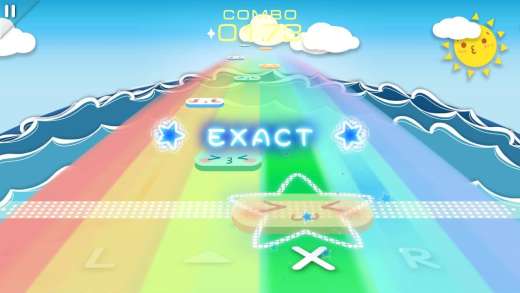 Odchodząc od ciężkich tematów, skupmy się na równie ważnej prezentacji audiowizualnej (jak nie najważniejszej!). W menu głównym utwory dostępne są w sześciu kategoriach, każda ze swoją ramką i unikatowymi grafikami podczas gry. Posegregowane zostały podług nieznanych mi kryteriów, bo wznosić się nad chmurami będziemy tak samo w lekko melancholicznych nastrojach, jak i tych pełniejszych energii. Ale generalnie pozory są zachowane: np. sunąć kolorową tęczą nad oceanem będziemy wśród odpowiednio radosnej muzyki, w podziemiach podświetlanych neonami doświadczymy ostrzejszej elektroniki, a ogarnięci mistyczną mgłą dosłyszymy utworów w stylu klasycznego Dalekiego Wschodu.
