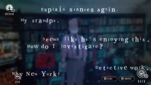 Nie bez powodu w Orchardzie fakty prezentowane są w tej samej formie, co przemyślenia lub pytania bohatera. Gdy zderzamy się z rzekomym winnym, gra przenosi nas obu do psychologicznego sadu, gdzie wątpliwości podważamy odpowiednio wybranym “dowodem”, który uprzednio wyrósł w formie gałęzi. Ten sam mechanizm wyboru wykorzystywany jest przy zadawaniu nurtujących nas pytań podczas śledztwa, czy nawet podejmowaniu jakichś akcji, i cechuje się on opornym dobieraniem opcji za pomocą przycisków. Trochę inaczej ma się to przy podejmowaniu Postawy, czyli wypowiedzi w trakcie toczonego dialogu (w przeciwieństwie do wszczęcia rozmowy spośród dostępnych przemyśleń), gdzie najczęściej przejawia się szansa na zaprzepaszczenie rozgrywki i otrzymanie ekranu „Game Over” (choć stan gry jest ciągle automatycznie zapisywany, więc zawsze powrócimy do chwili sprzed wyboru). Zbieramy więc poszlaki zapisujące się w tej samej formie, co opcje interakcji i jako takie zostają też przedstawione w finalnym starciu z podejrzewanym, tj. jako szereg dostępnych opcji wyboru. Sensem istnienia Orchardu jest więc bycie jedyną formą zapisywania jakichkolwiek faktów w grze. Jak wspominałem, ostatni segment historii rozgrywa się całkowicie bez drzewka i jego gałęzi, a także zostaje zwieńczony tym samym starciem naszych domyśleń z antagonistą, tyle że bez użycia psychologicznego sadu. Wygląda to trochę, jak gdyby twórcy w pełni pojęli stworzone przez siebie systemy dopiero wtedy, gdy stały się one na tyle dojrzałe, żeby opuścić rodzinny dom i zakończyć grę.