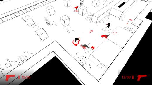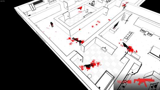 hotlinemiamilike. Strzelanie nie jest zrobione ani wyjątkowo dobrze, ani też strasznie źle, AI nie jest zbyt wymagające - przeciwnicy są głupi i pchają się nam na kule, ale cywile potrafią pobiec po pomoc. Rodzajów broni jest mało a grafika jest, powiedzmy, bardzo minimalistyczna. Ale parę dobrych pomysłów twórców zaważyło na szali i zasłoniło minusy w moich oczach.