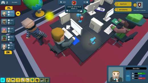 Ale jeszcze przed główną częścią gry, druga strona esportowego medalu - zarządzanie drużyną oraz jej główną siedzibą. To w niej dbamy o swoich zawodników, podpisujemy kontrakty, wstawimy nowe focie na fejsa oraz rozpoczynamy mecze. W sklepie zakupimy kolejne pokoje dodające nowe funkcje (pokój od social mediów, rozrywki czy gabinet z trofeami) czy po prostu ulepszające obecne (większa sypialnia, czyli miejsce na więcej łóżek do spania), oraz nowe przedmioty do upiększenia bazy lub do korzystania przez zawodników.