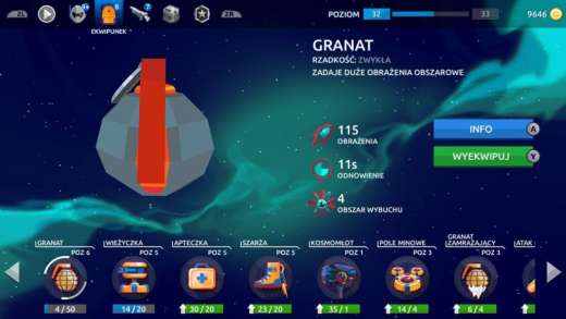 SP przyszło na Switcha z telefonów i to widać. Grając można odczuć, że gra się w produkcję na smartfony, często lecą skrzyneczki, a aby ulepszać bronie i sprzęt potrzebne są nam karty. Wygląda bardzo jak darmowa produkcja, w której za parę groszy dokupić można kolejne ułatwienie. Jednak w wersji na Switcha nie ma w ogóle żadnych dodatkowych zakupów. Podejrzewam, że trochę zwiększono częstotliwość wypadania lootu, żeby nikt nie tęsknił za płatną pomocą, dostajemy tego w grze naprawdę dużo. Gra nie straciła nic w mojej ocenie na zmianie modelu biznesowego, za 40 złotych jest w niej dużo zawartości i zabawy, gdybym grał w to na telefonie pewnie musiałbym wydać podobną ilość gotówki, żeby się dobrze bawić. Zresztą, produkcje QubicGames bardzo często trafiają na promocje, a Space Pioneer było nawet do zgarnięcia