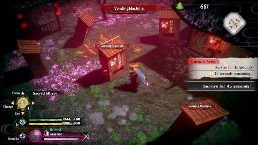 Nie chciałbym się jednak skupiać na tym elemencie, tylko bez zbędnego przedłużania przejść do wspomnianego w cytacie „odpowiedniego systemu walki”. W Katana Kami znajdziemy multum mieczy różnych rodzajów, z których każdy wyróżnia się przyjmowaną przy jego władaniu postawą i stylem walki. Niektóre z broni posiadają też swoje własne, unikatowe ruchy, które, jak każdy, odblokowujemy po spełnieniu kryteriów związanych z ich używaniem. Katany wykorzystujemy oczywiście do fechtunku z pojedynczymi przeciwnikami, uważnie przyglądając się ich ruchom i atakowaniu, gdy opuszczą gardę, choć możemy też po prostu wyprowadzać ich z równowagi, by potem zadawać krwawe ciosy. Zamysł ten utrzymuje się w starciach z nieludzkimi stworzeniami yokai, nawet jeśli nie każde z nich uzbrojone jest w broń białą: blok tudzież unik, a następnie ofensywa. Gwoli prostszego zobrazowania, nawet jeśli szczypię się za każdym razem, gdy używam tego typu porównań, można to nazwać podobnym do Dark Souls czy, bardziej poprawnie, a na pewno bliżej klimatycznie, Sekiro i Nioh. Całkiem nowymi elementami, odłączającymi się w pewnym stopniu od tego, co można znać z Way of the Samurai, są ataki Kiwami i Katana Time. Jednym z argumentów twórców za dodaniem tego typu specjalnych akcji było ułatwienie wizualnego rozróżniania trzymanych mieczy i przyjmowanych postaw w rzucie izometrycznym[2].