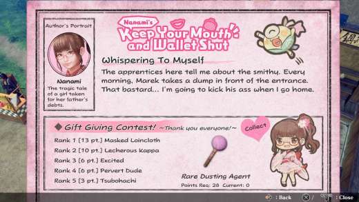 Gdy Nanami przebywa w zamknięciu, możemy wysyłać jej prezenty i zbierać punkty, za które otrzymujemy specjalne przedmioty oraz akcesoria.[/caption]