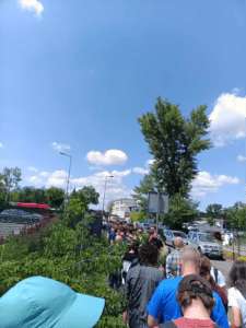 Wzdłuż płotu obiektu, w którym całe doświadczenie miało stać się faktem, zastałam dość pokaźny tłum ludzi…, ale przecież kolejki się zdarzają, prawda? Jedni zapewne tak jak ja, czekali by zeskanować swój cyfrowy bilet, inni by dopiero go nabyć. Jedna kolejka dla wszystkich z biletem w ręce, chcących by go dopiero zakupić i akredytacji? Żaden problem! Przyjechałam tak samo jak Wy ze swoich wygodnych domków. Przecież jeśli aż tak mi zależało, by zacząć swoją pracę wcześniej, mogłam zwyczajnie… Przyjechać wcześniej, to oczywiste!
